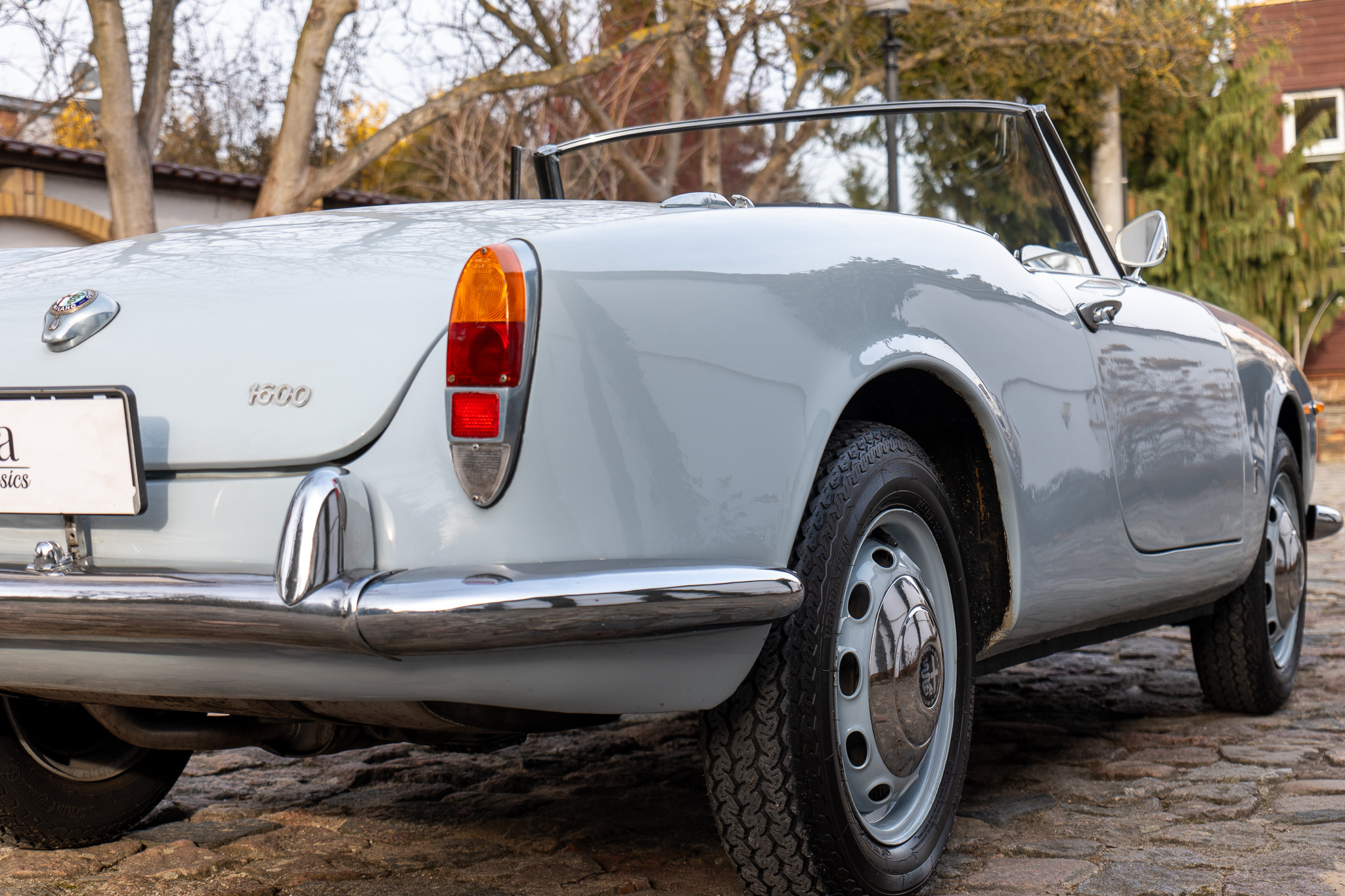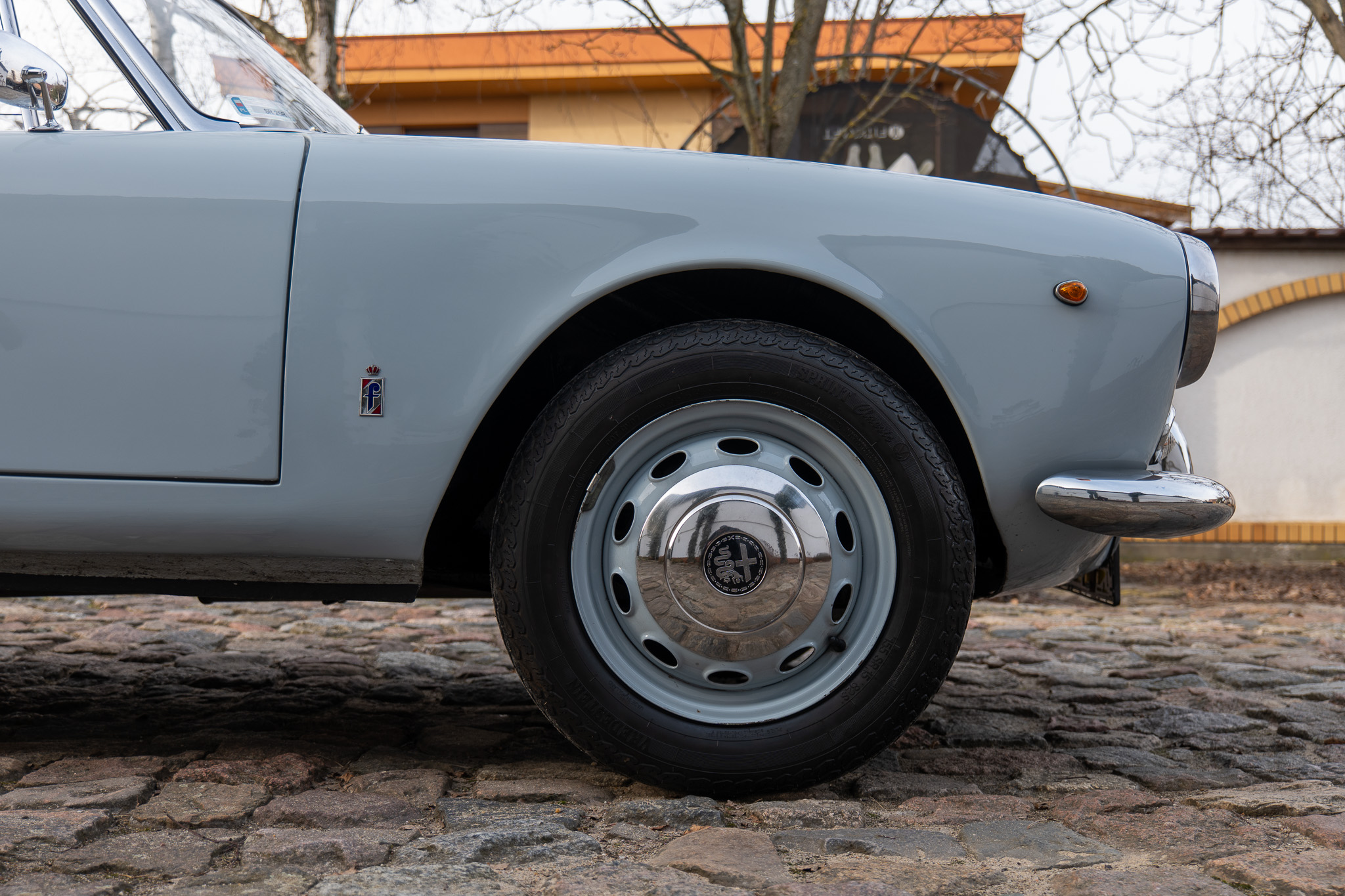 Alfa obecnie ma 17” całoroczne opony 215/45 Imperial z 2021 roku oraz felgi księżyce. Sprawna, jeżdżąca. Przegląd przeszła z uwagą, że do zrobienia jest lewy przedni wahacz. Blacharsko trzyma się. Wizualnie – w kilku miejscach schodzi bezbarwny lakier, dach ktoś przede mną pomalował na biało, są też drobne odpryski i ślady po obijaniu drzwiami.