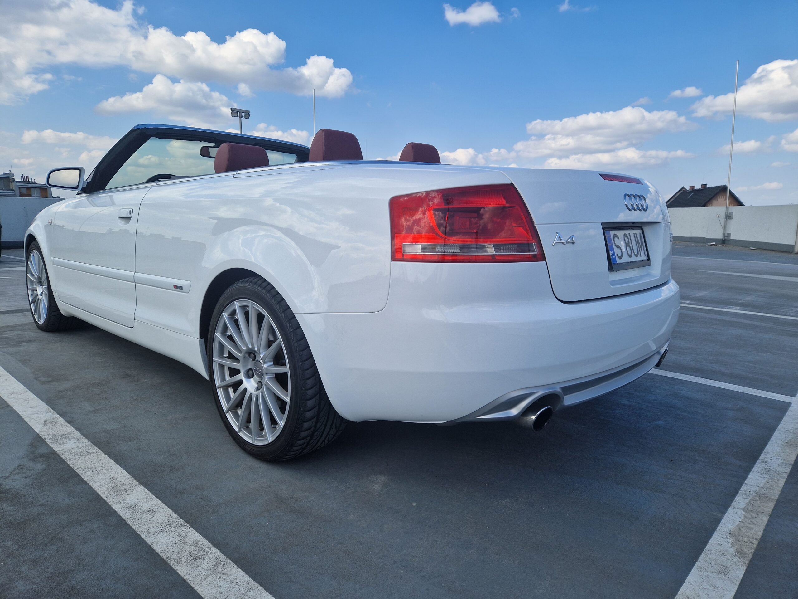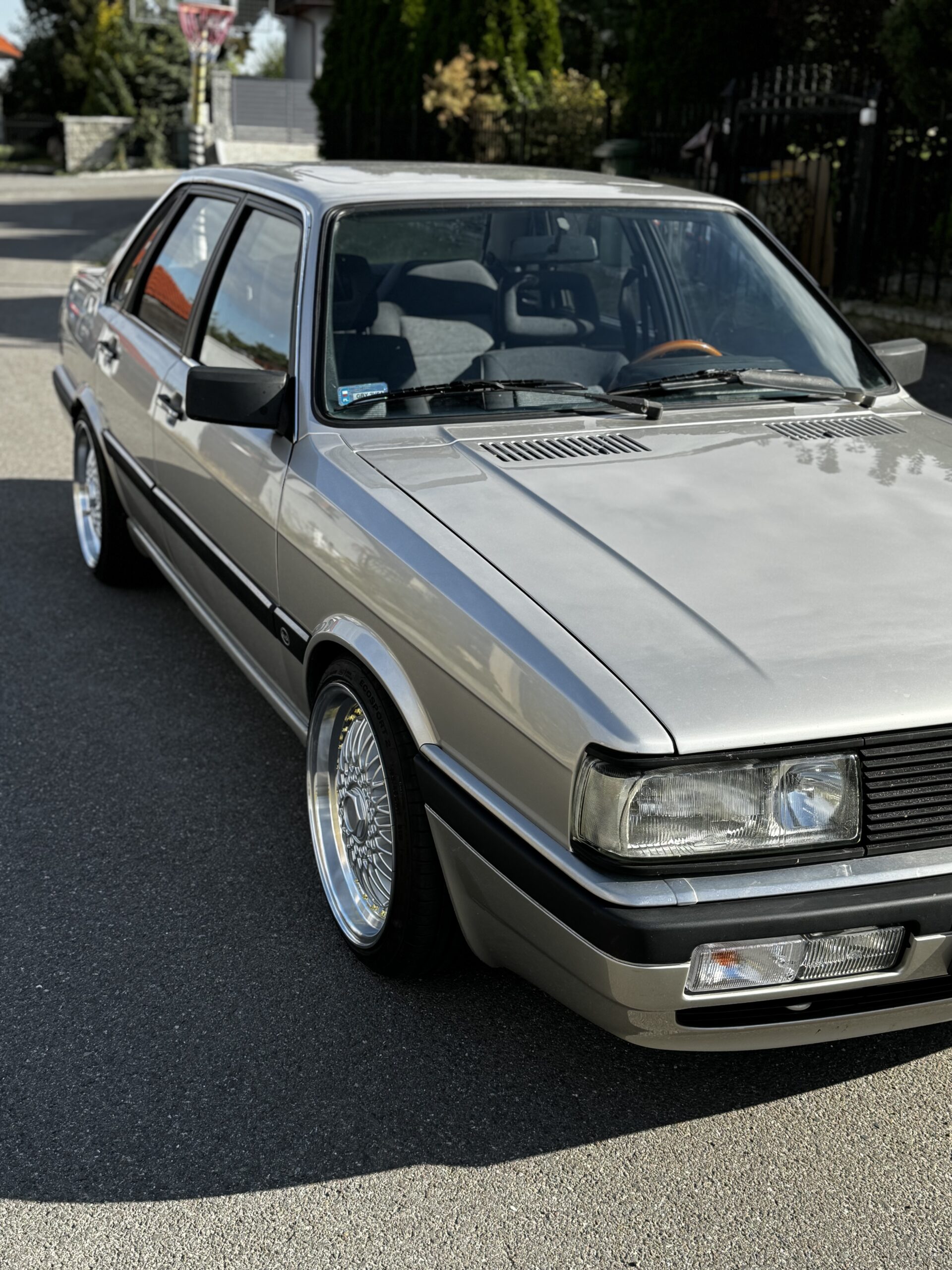 Przedmiotem sprzedaży jest Audi 80 serii B4 w kolorze perłowym „Purpurrot” z skórzano-materiałową tapicerką. Sprowadzony z Solingen, Niemcy od trzeciego właściciela. Pierwszym wlaścicielem samochodu było Audi AG, służył jako pojazd pokazowy. Samochód ma 30 lat, mimo to jest zachowany w bardzo dobrym stanie. Posiada dokumentację serwisowa, książkę z regularnymi wpisami, faktura z 2024r. z dużego serwisu opiewająca na kwotę ponad 7’000 euro oraz dwa oryginalne kluczyki.