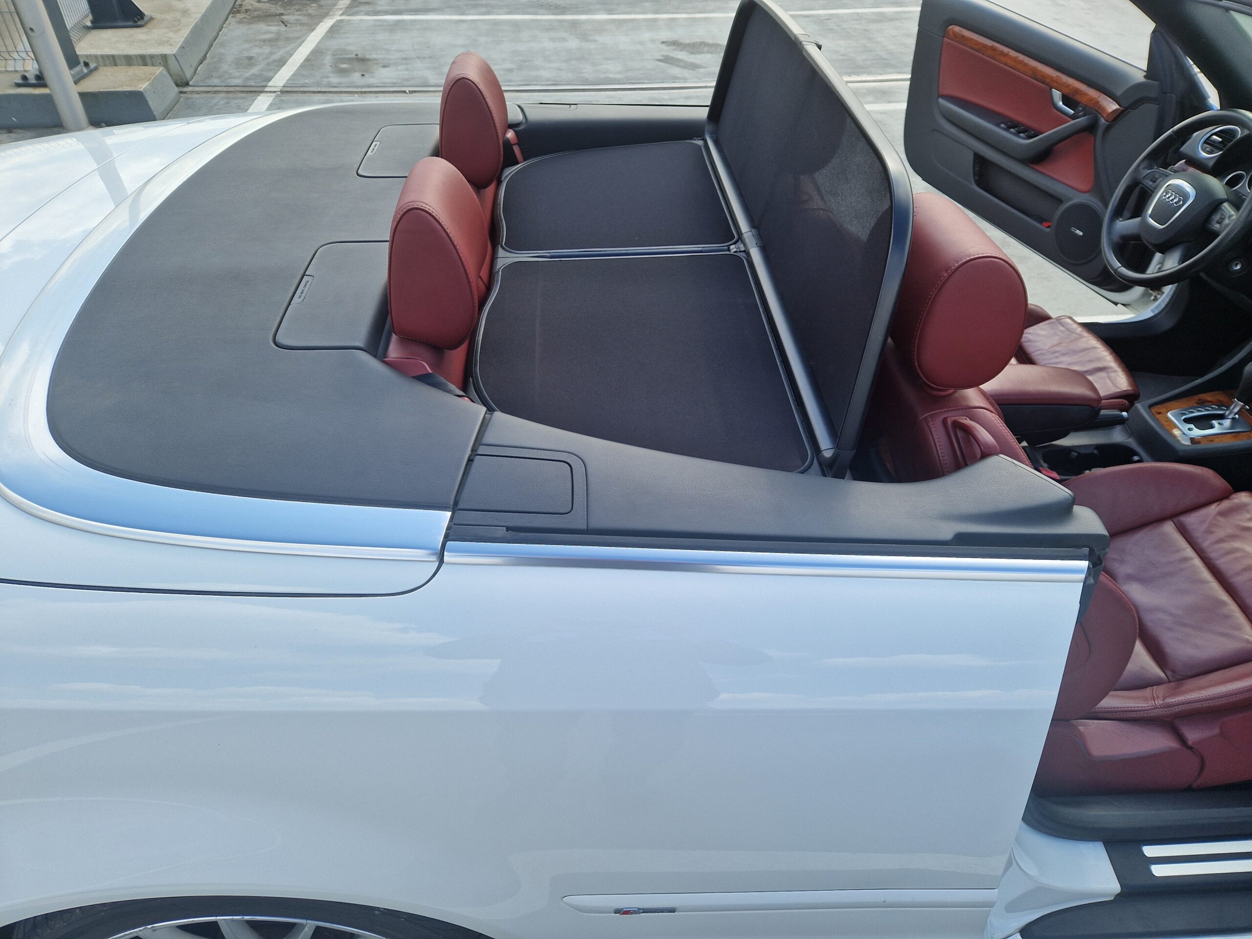 Dach materiałowy w bardzo dobrym stanie, material nie ma widocznych przetarc czy uszkodzeń. Jest otwierany i zamykany elektrycznie. W komplecie jest oryginalny windshot.