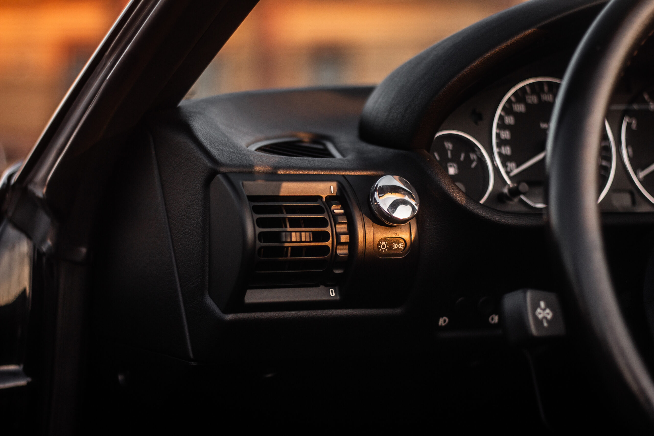 Środek auta niezniszczony – kierownica i fotele bez przetarć.