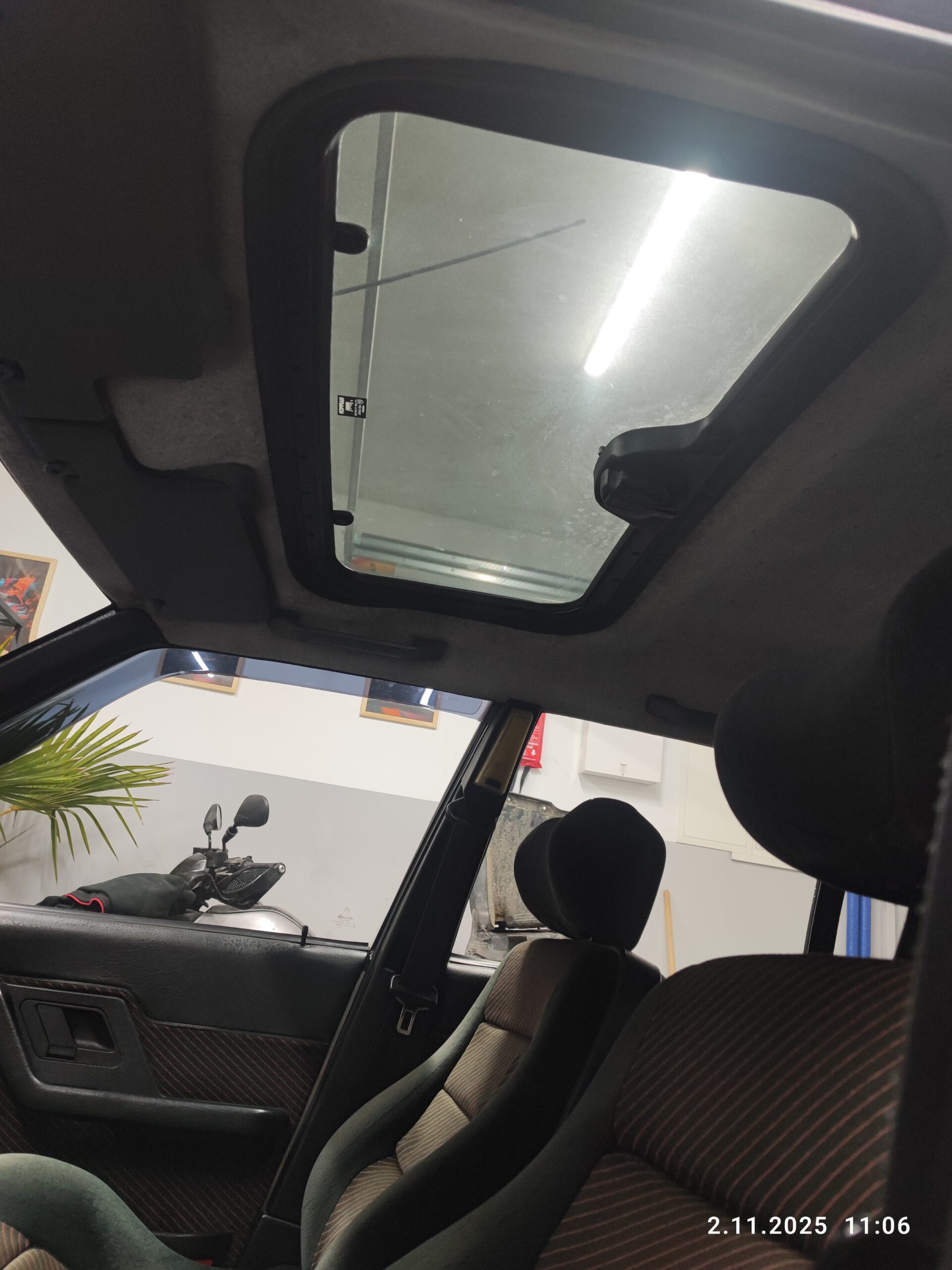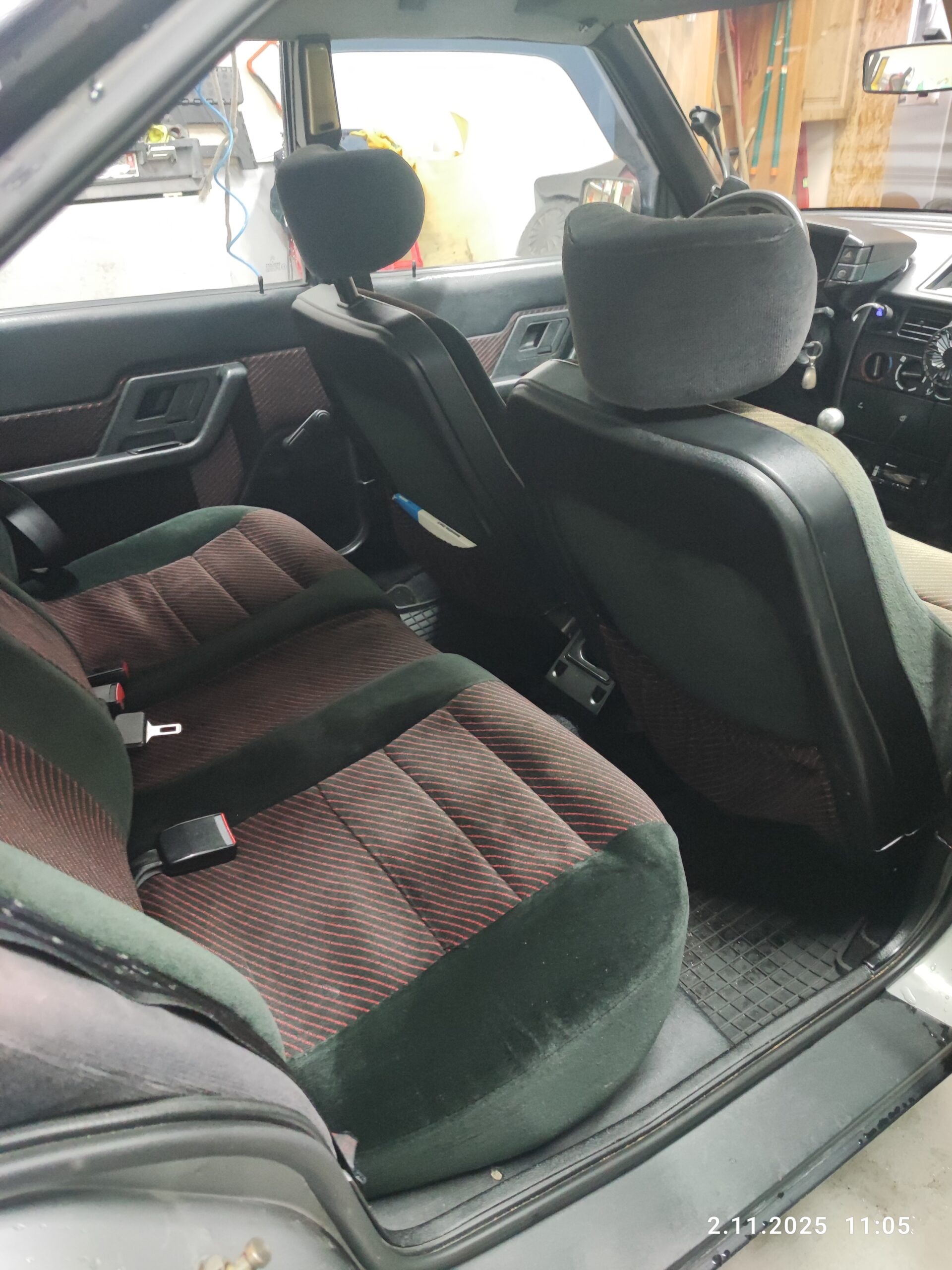 Wnętrze jest kompletne, zachowane w bardzo dobrym stanie. Plastiki matowe. Podsufitka jak nowa. Oryginalny zestaw dywaników welurowych w komplecie.