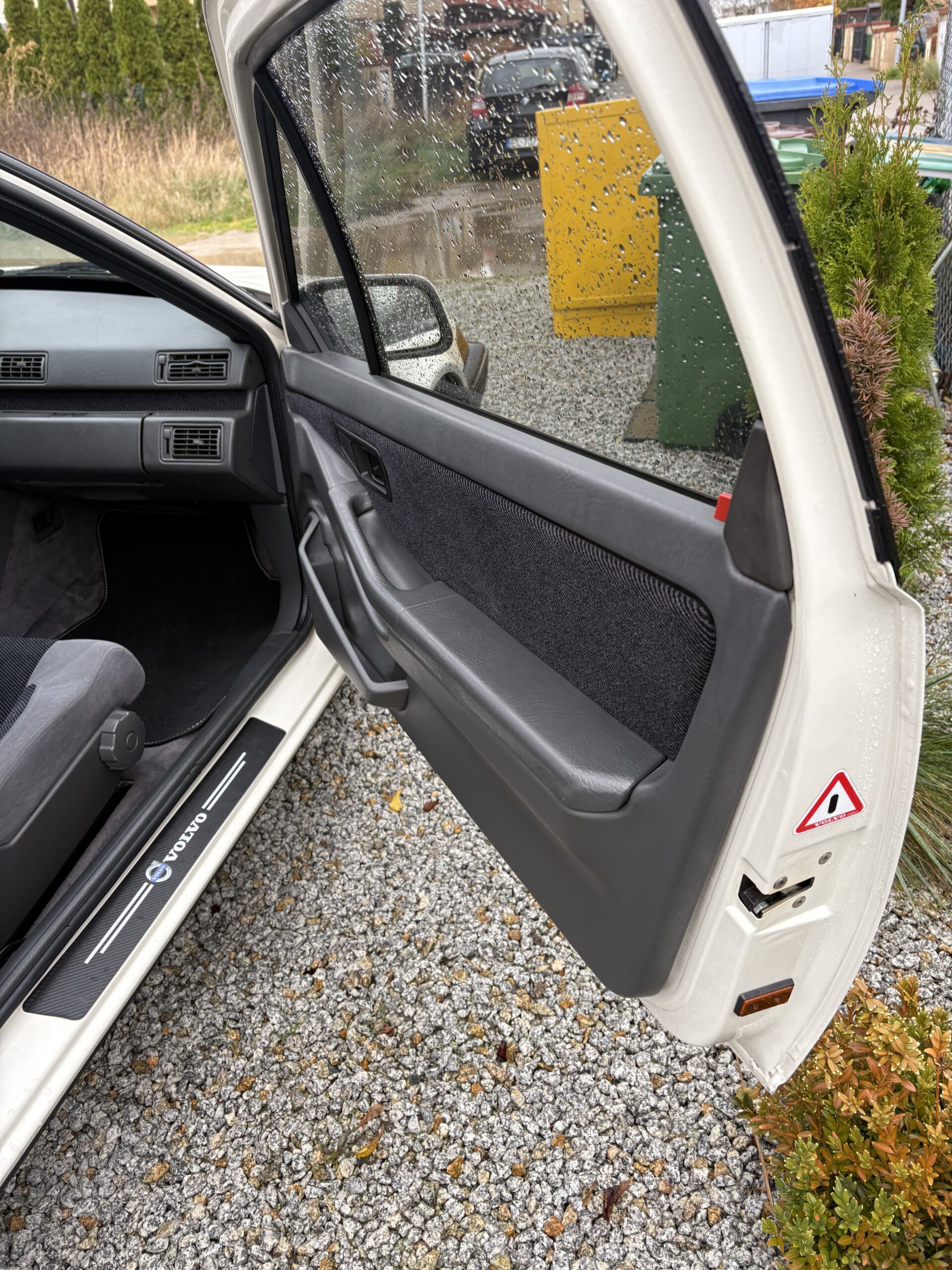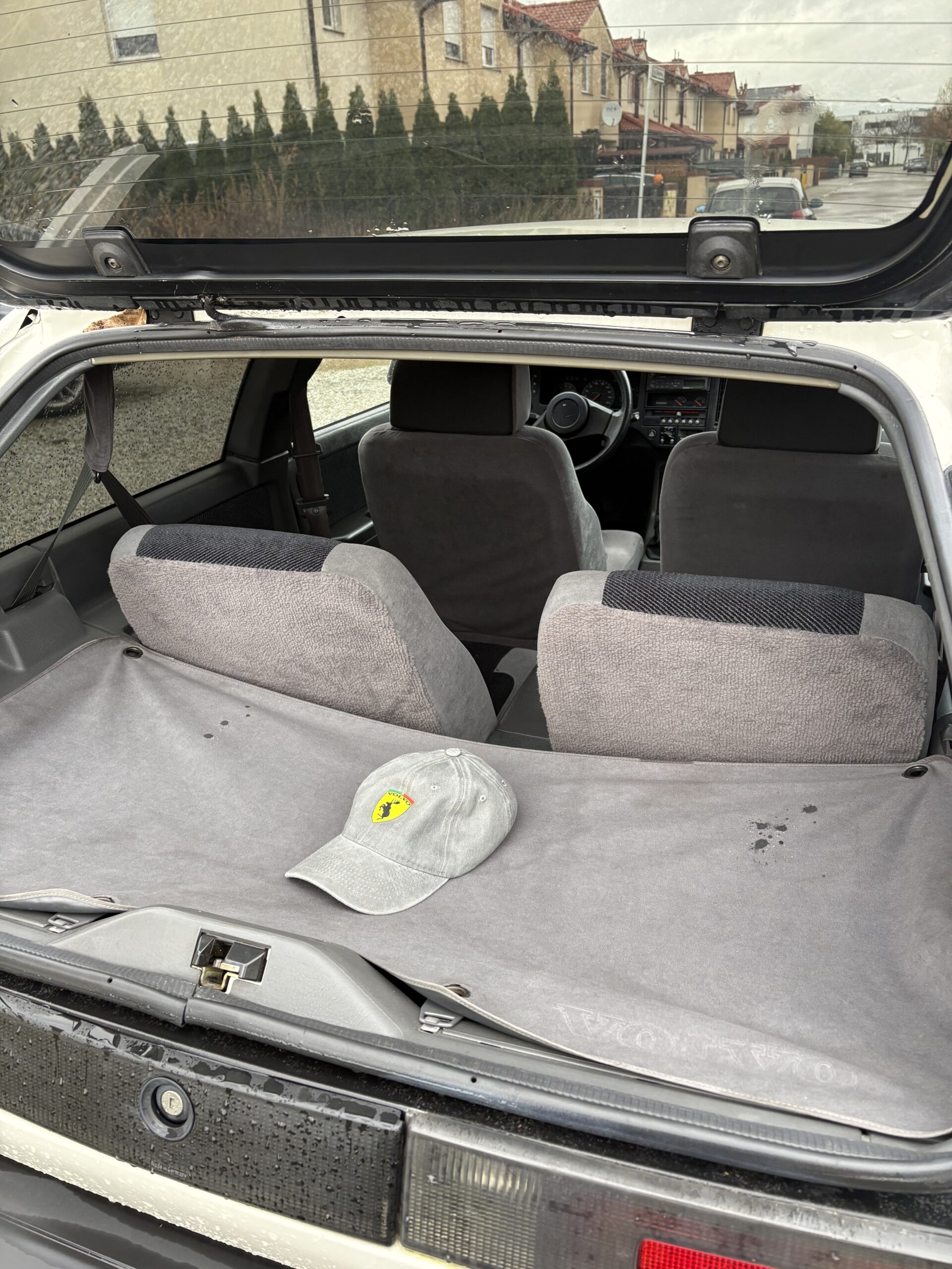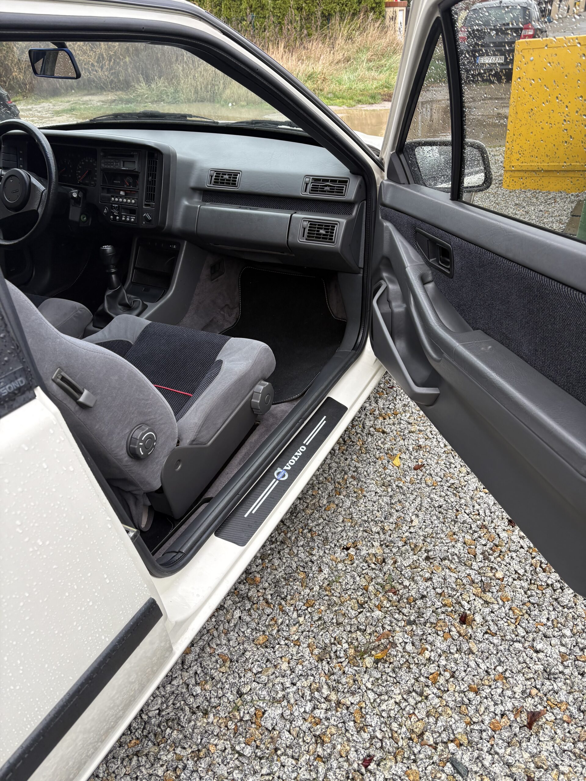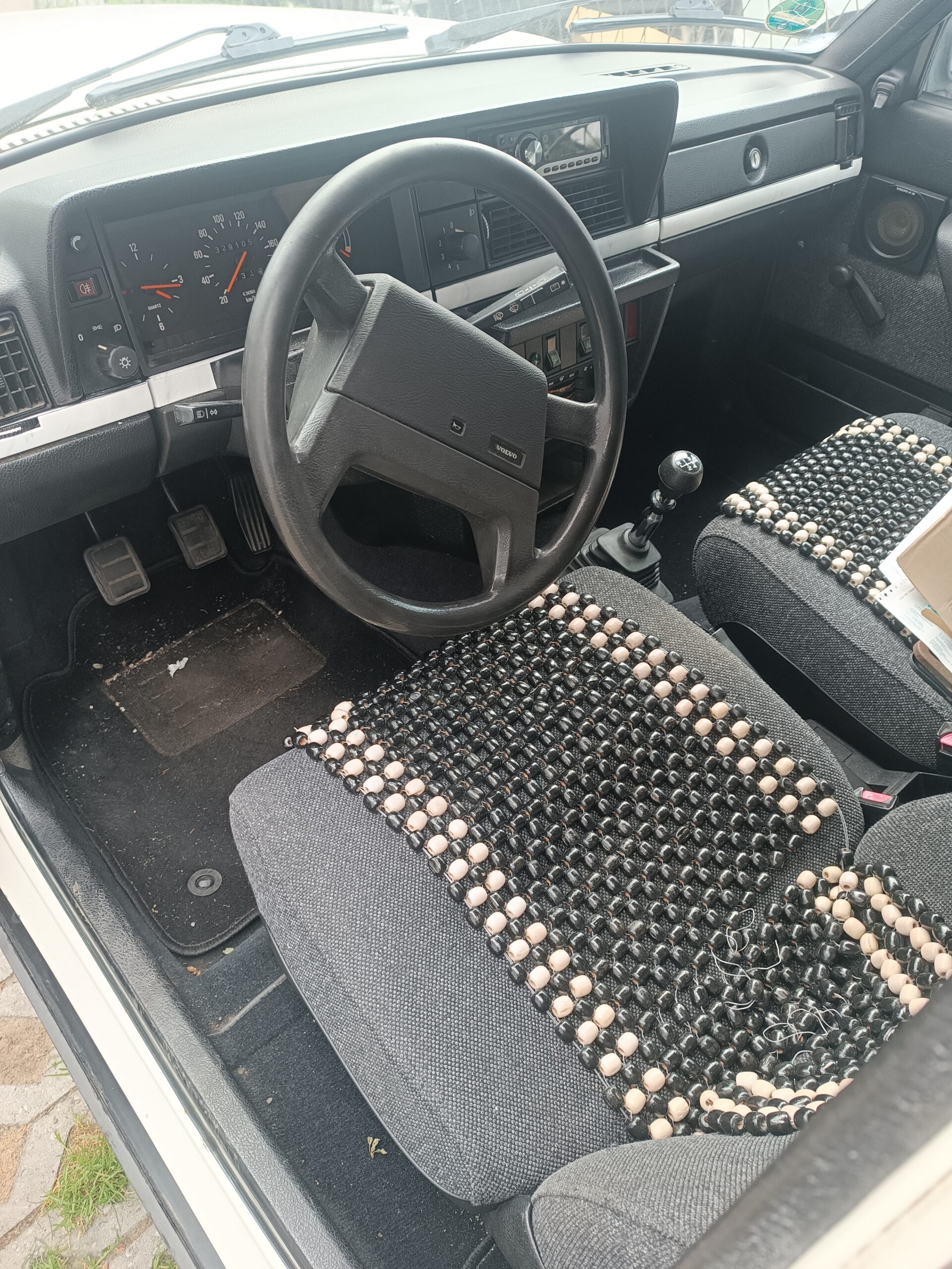 Wnętrze jest kompletne, zachowane w perfekcyjnym stanie, wygląda jakby samochód wczoraj opuścił fabrykę. Tapicerka foteli i boczków są jak nowe. Plastiki matowe. Podsufitka jak nowa. Oryginalny zestaw dywaników welurowych bez śladów użytkowania. W bagażniku oryginalny pokrowiec volvo z katalogu dealera z tamtych lat.