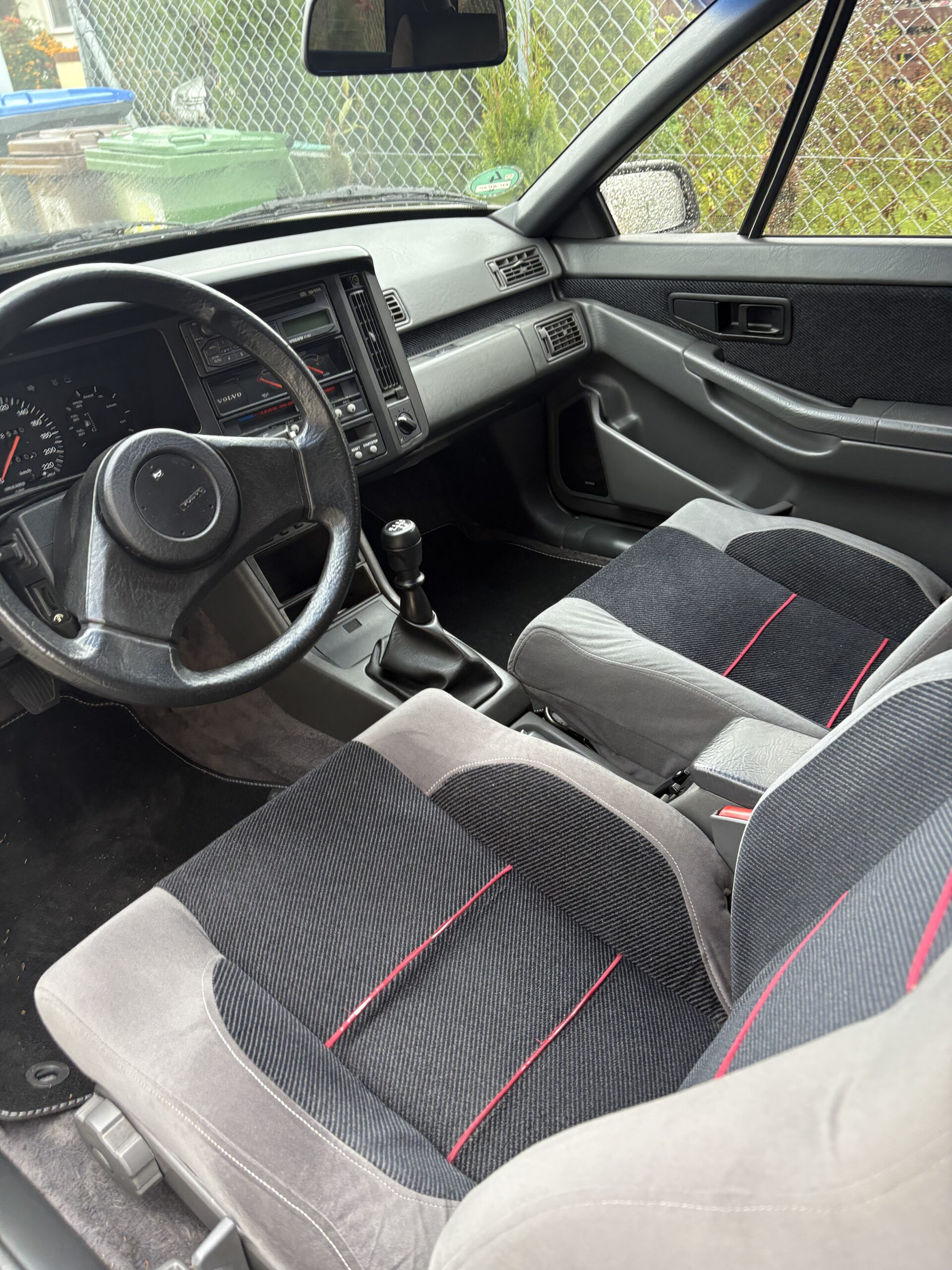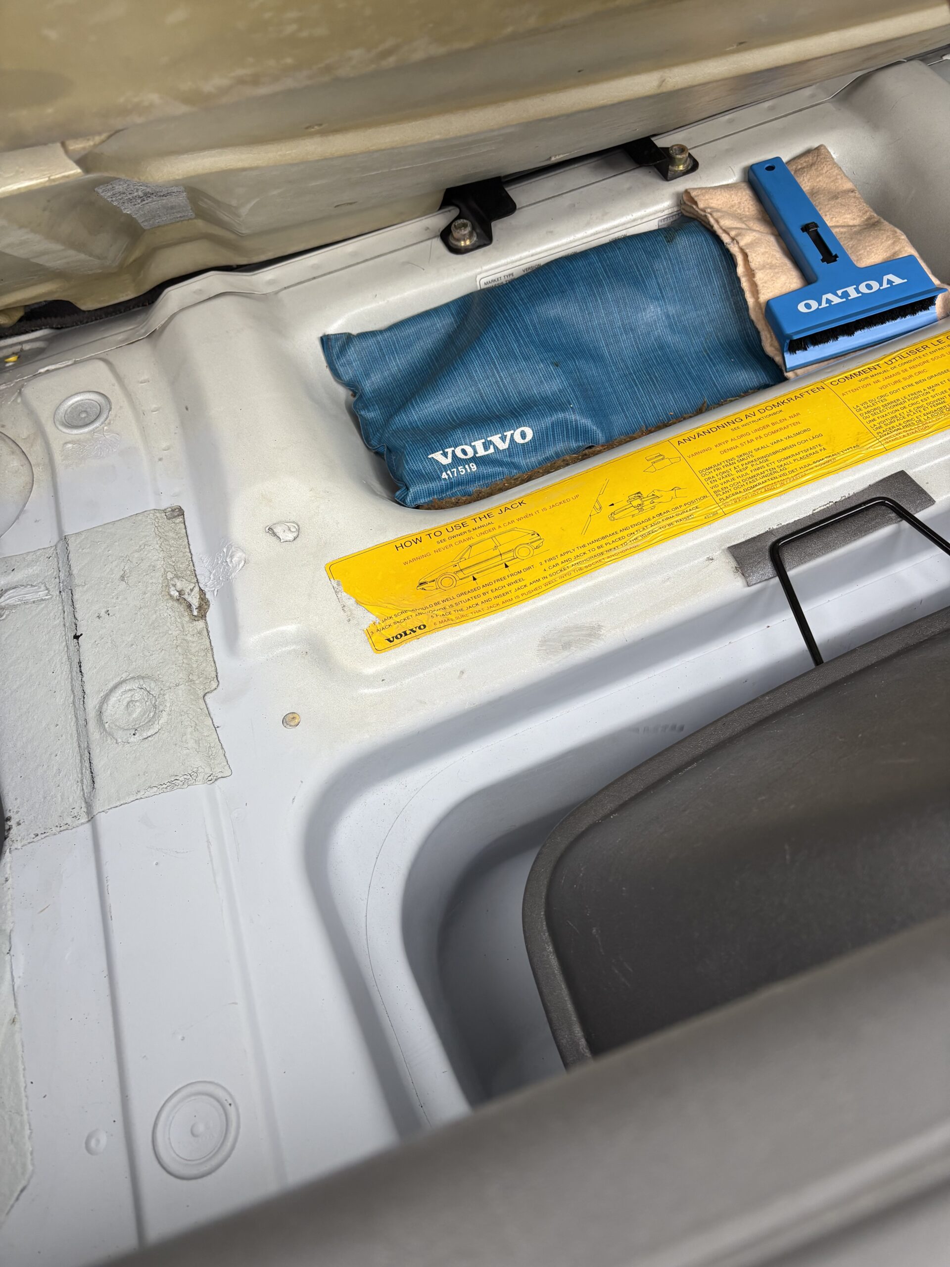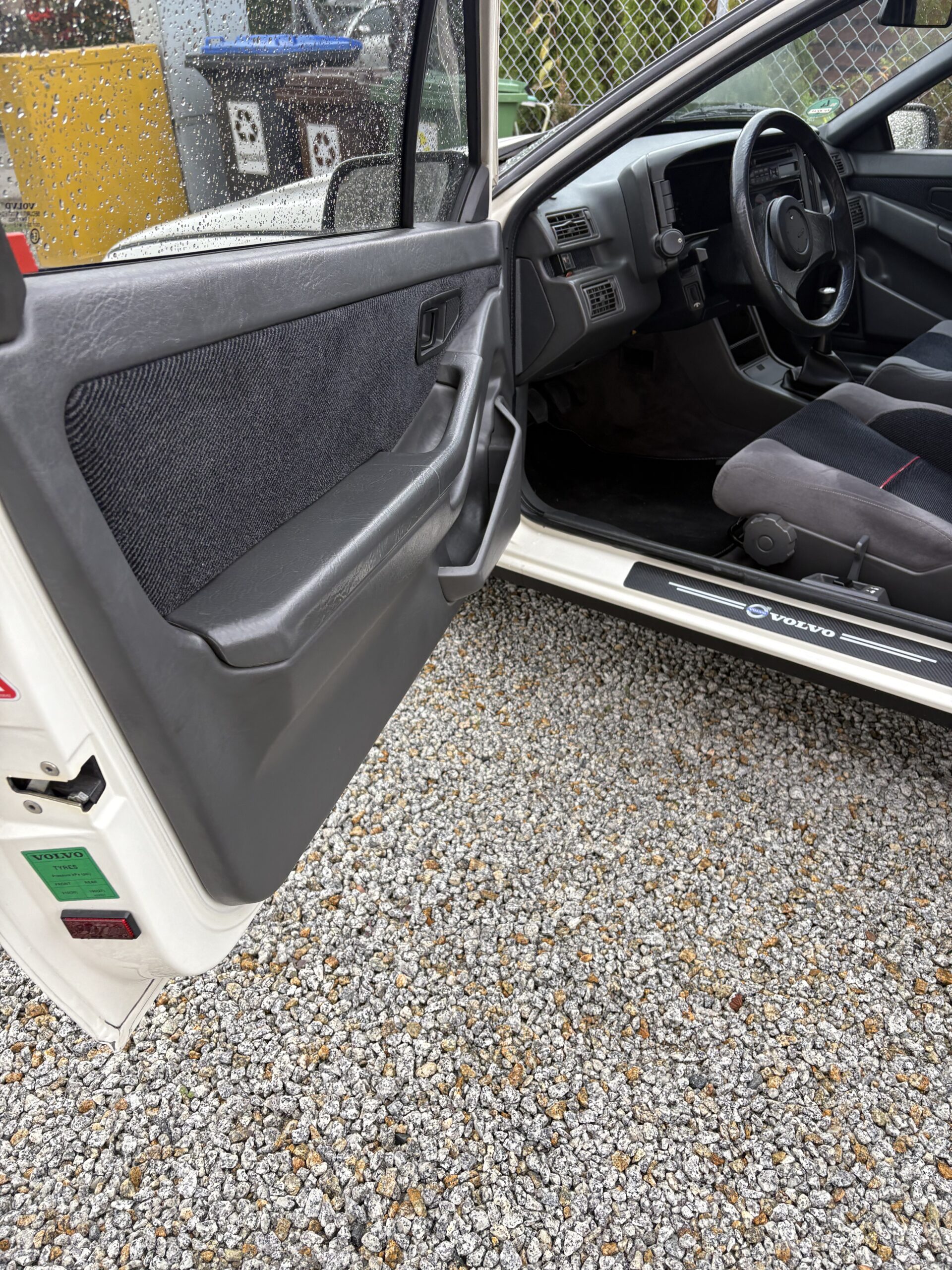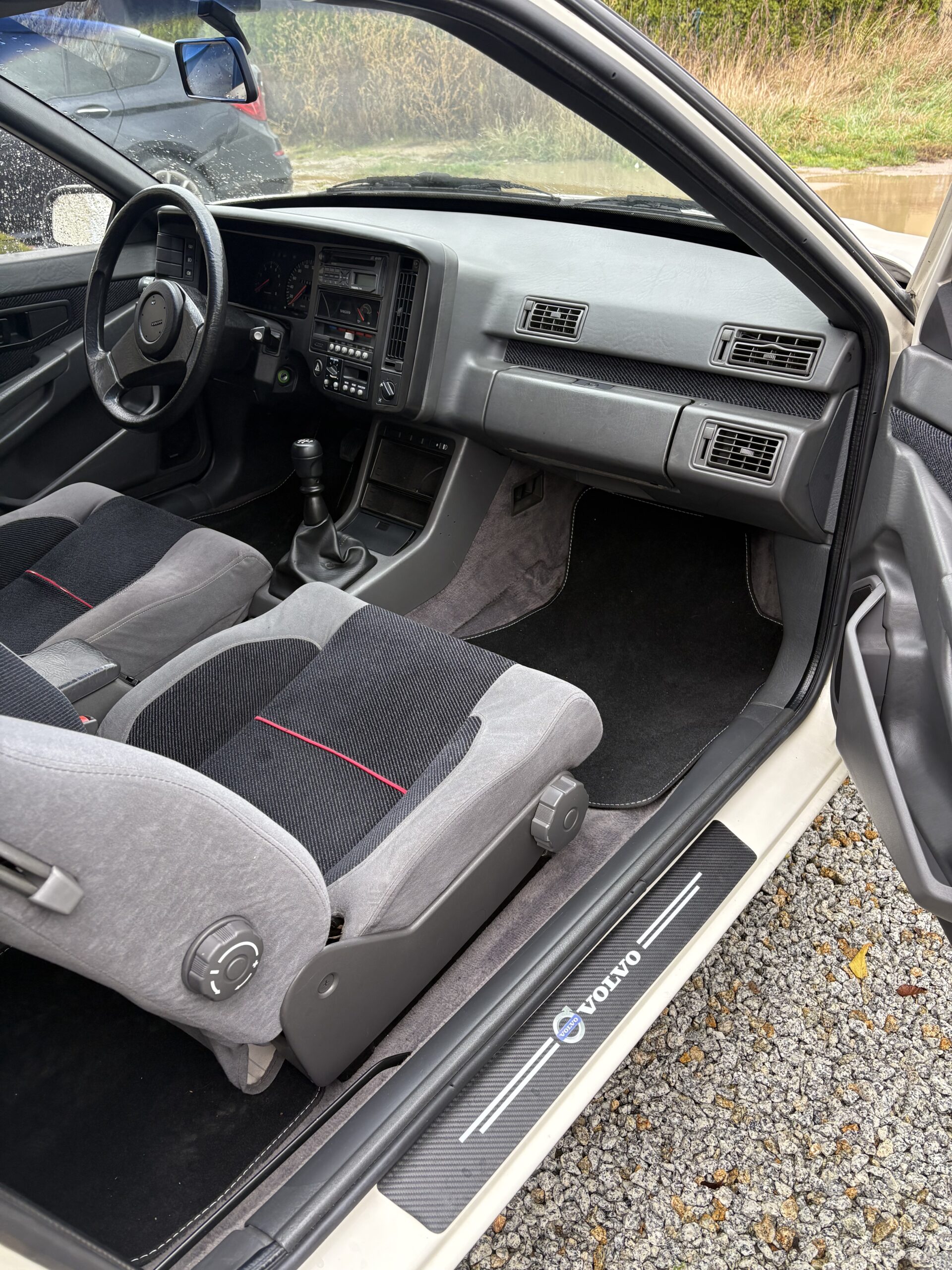 Wnętrze jest kompletne, zachowane w perfekcyjnym stanie, wygląda jakby samochód wczoraj opuścił fabrykę. Tapicerka foteli i boczków są jak nowe. Plastiki matowe. Podsufitka jak nowa. Oryginalny zestaw dywaników welurowych bez śladów użytkowania. W bagażniku oryginalny pokrowiec volvo z katalogu dealera z tamtych lat.