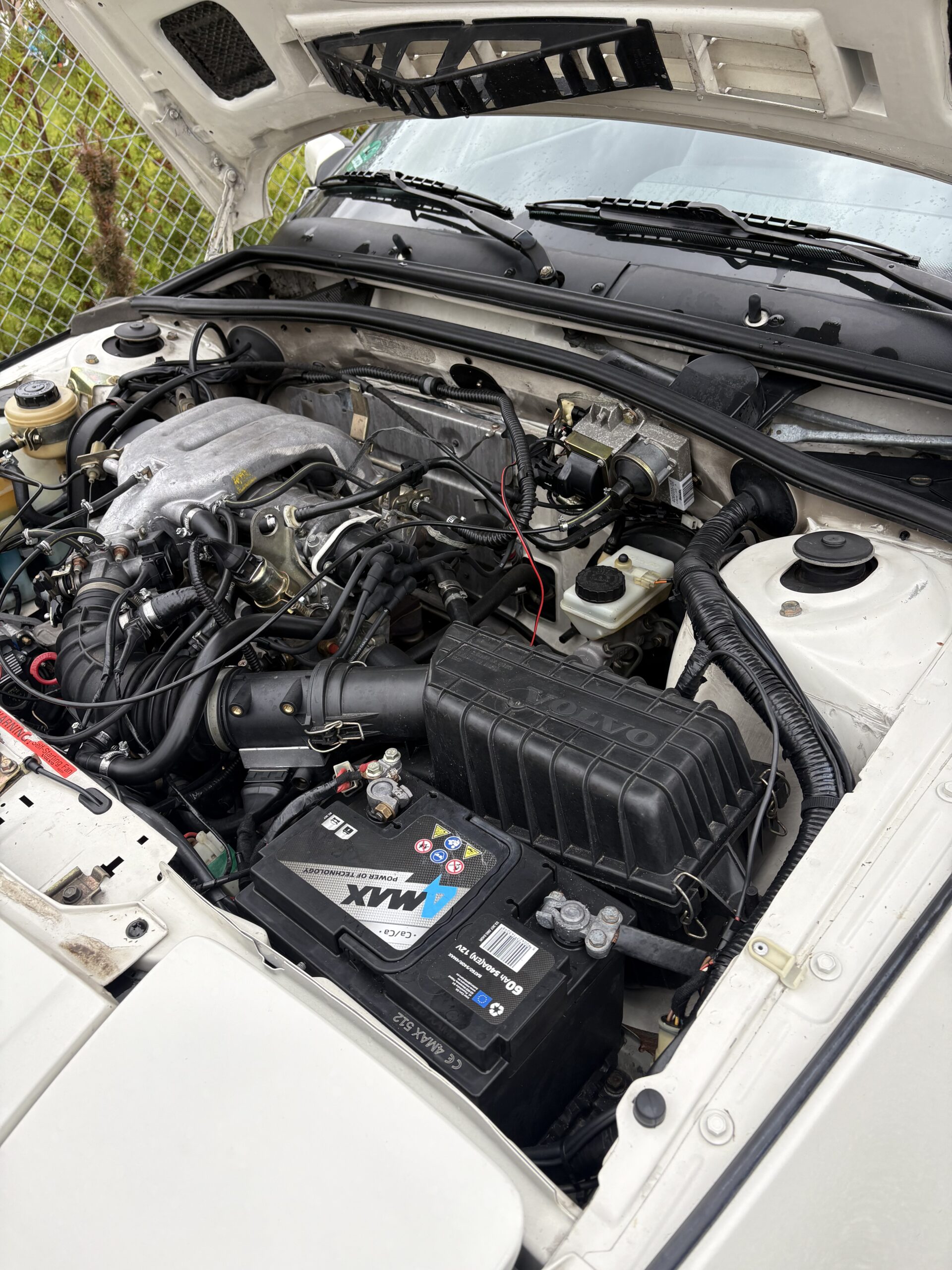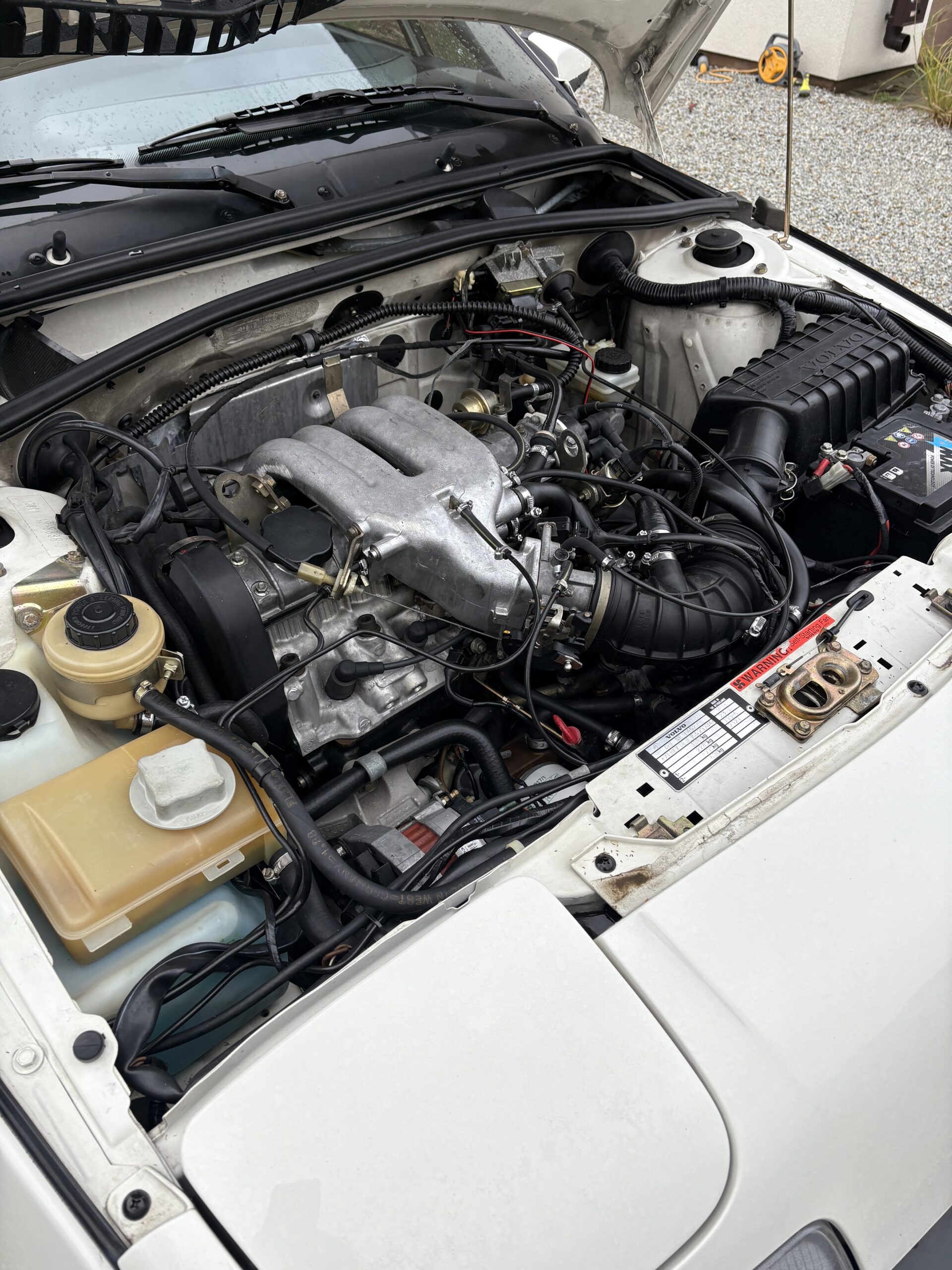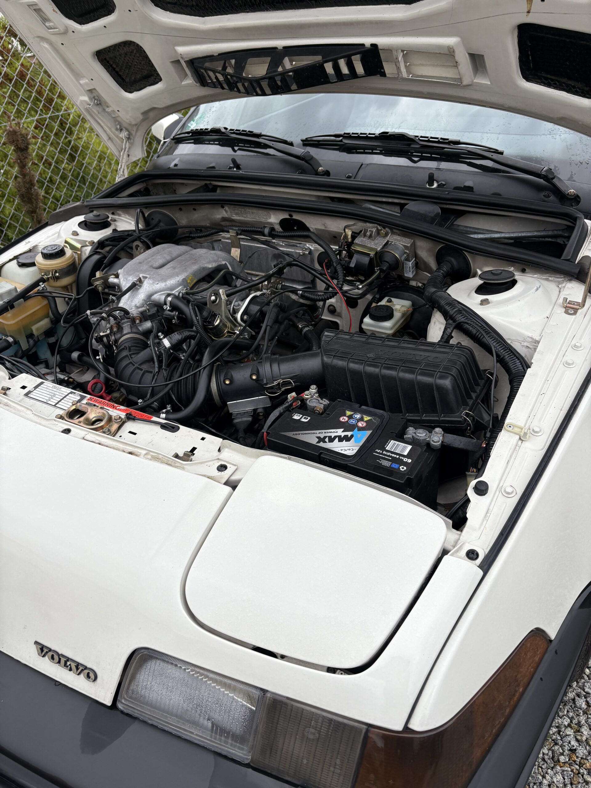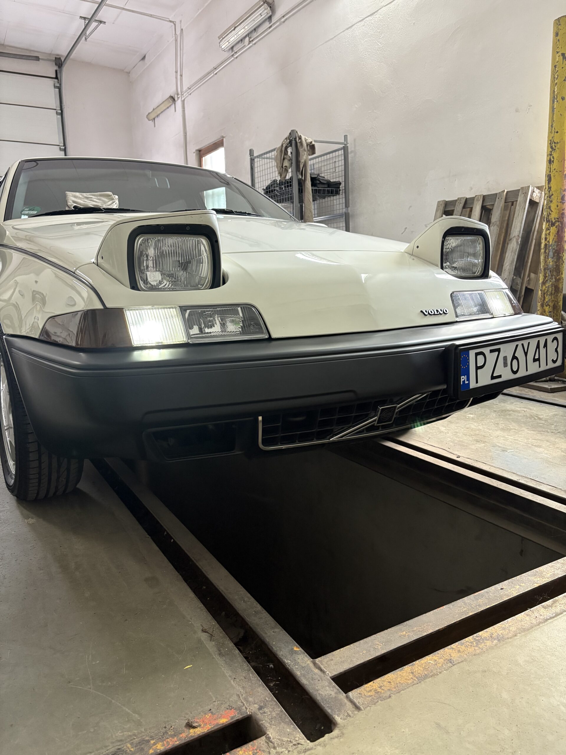Wnętrze jest kompletne, zachowane w perfekcyjnym stanie, wygląda jakby samochód wczoraj opuścił fabrykę. Tapicerka foteli i boczków są jak nowe. Plastiki matowe. Podsufitka jak nowa. Oryginalny zestaw dywaników welurowych bez śladów użytkowania. W bagażniku oryginalny pokrowiec volvo z katalogu dealera z tamtych lat.